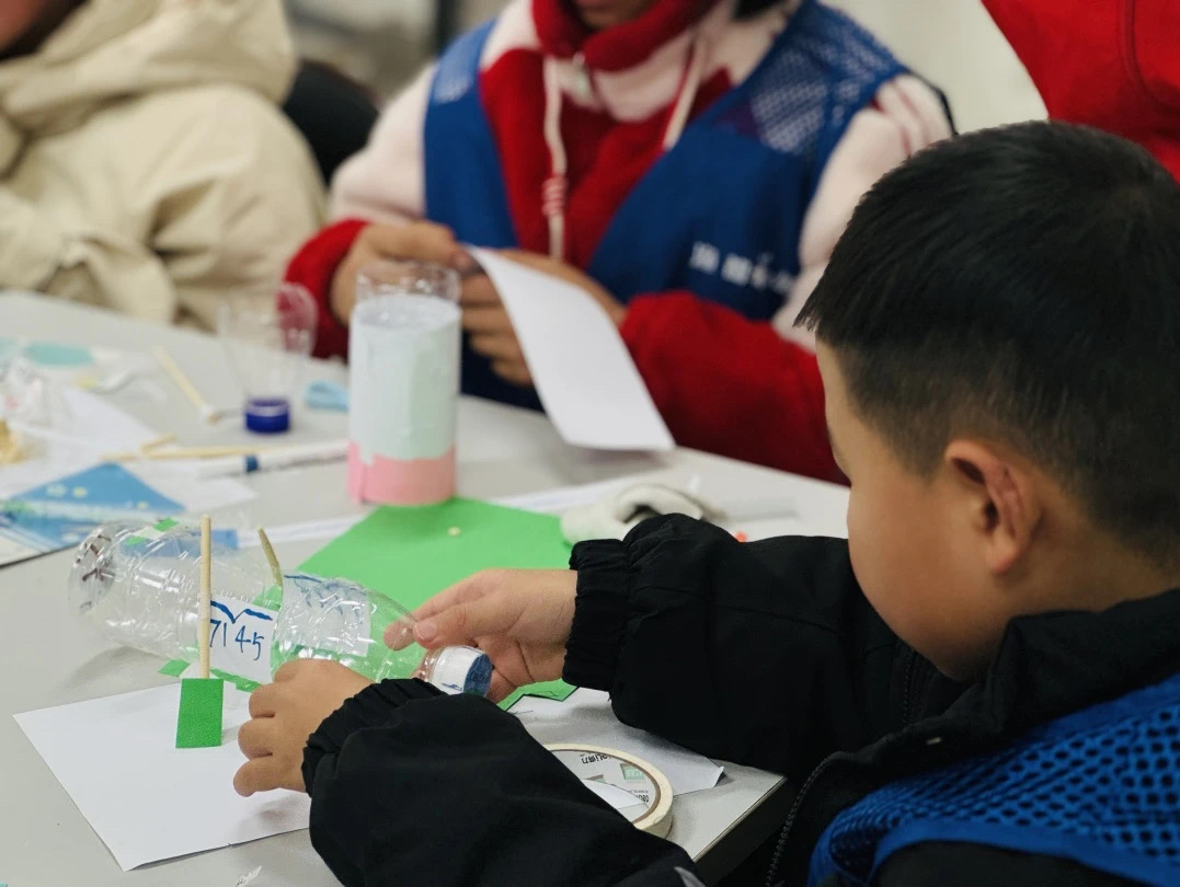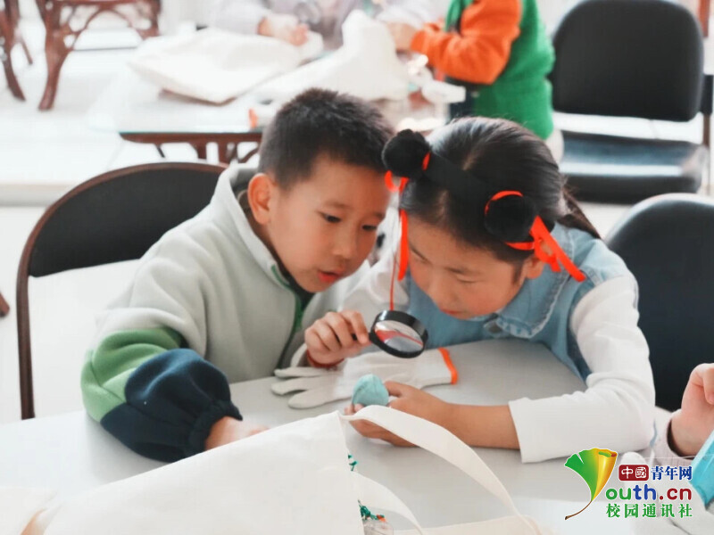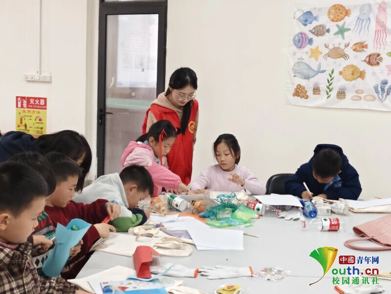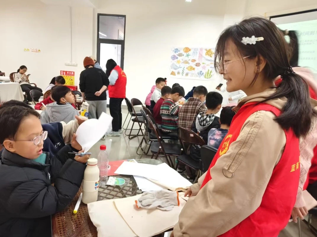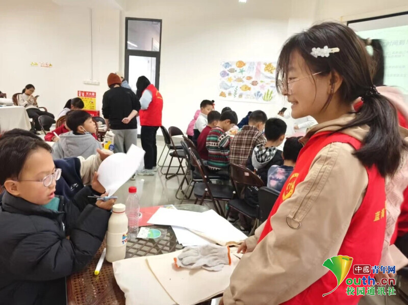 图为志愿者指导同学们制作手工。陈熔 供图
