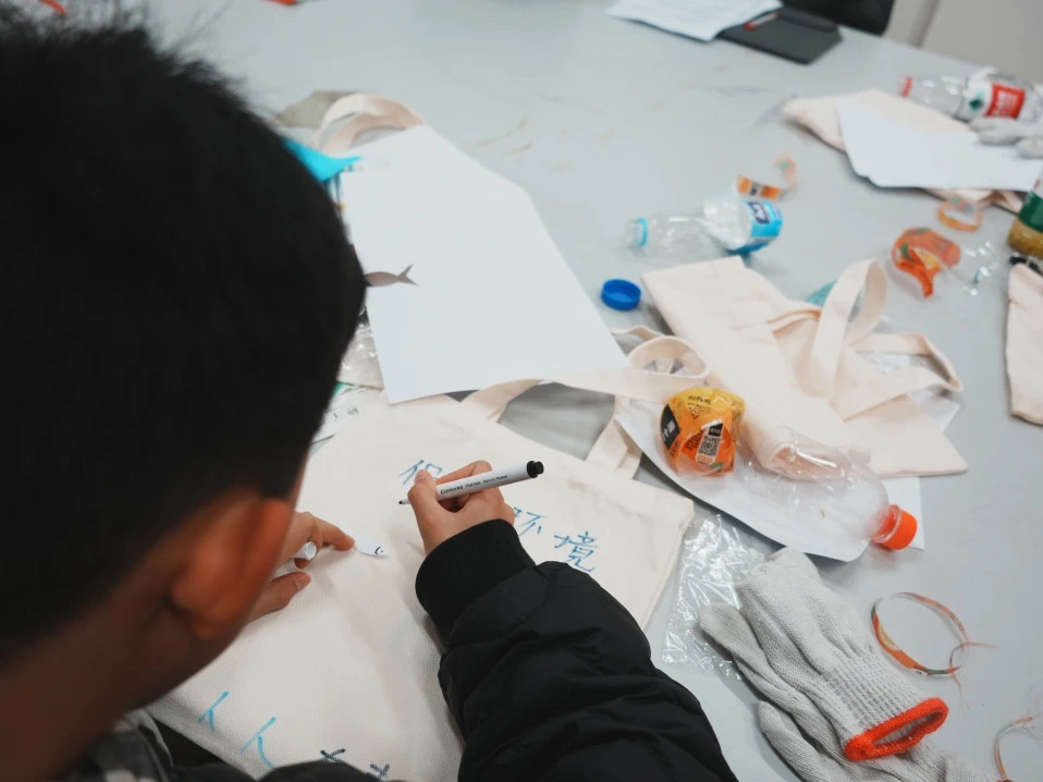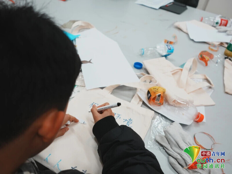 图为同学创作环保袋。陈熔 供图
