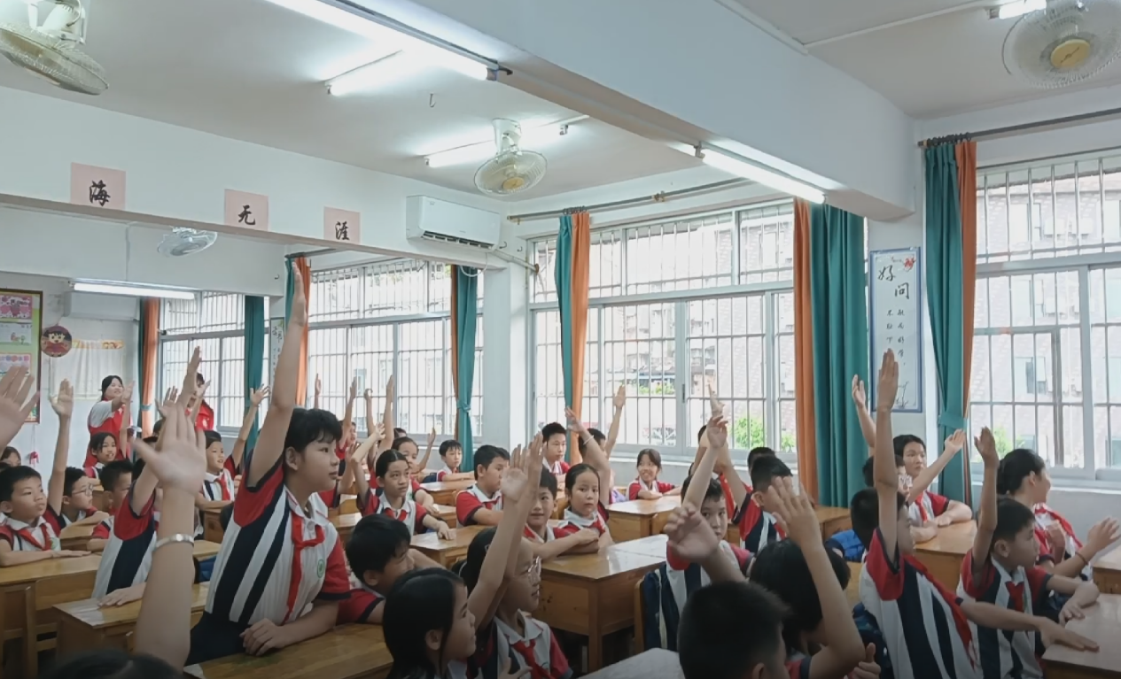 图为幼儿园小朋友们踊跃举手发言。潘佳意 供图