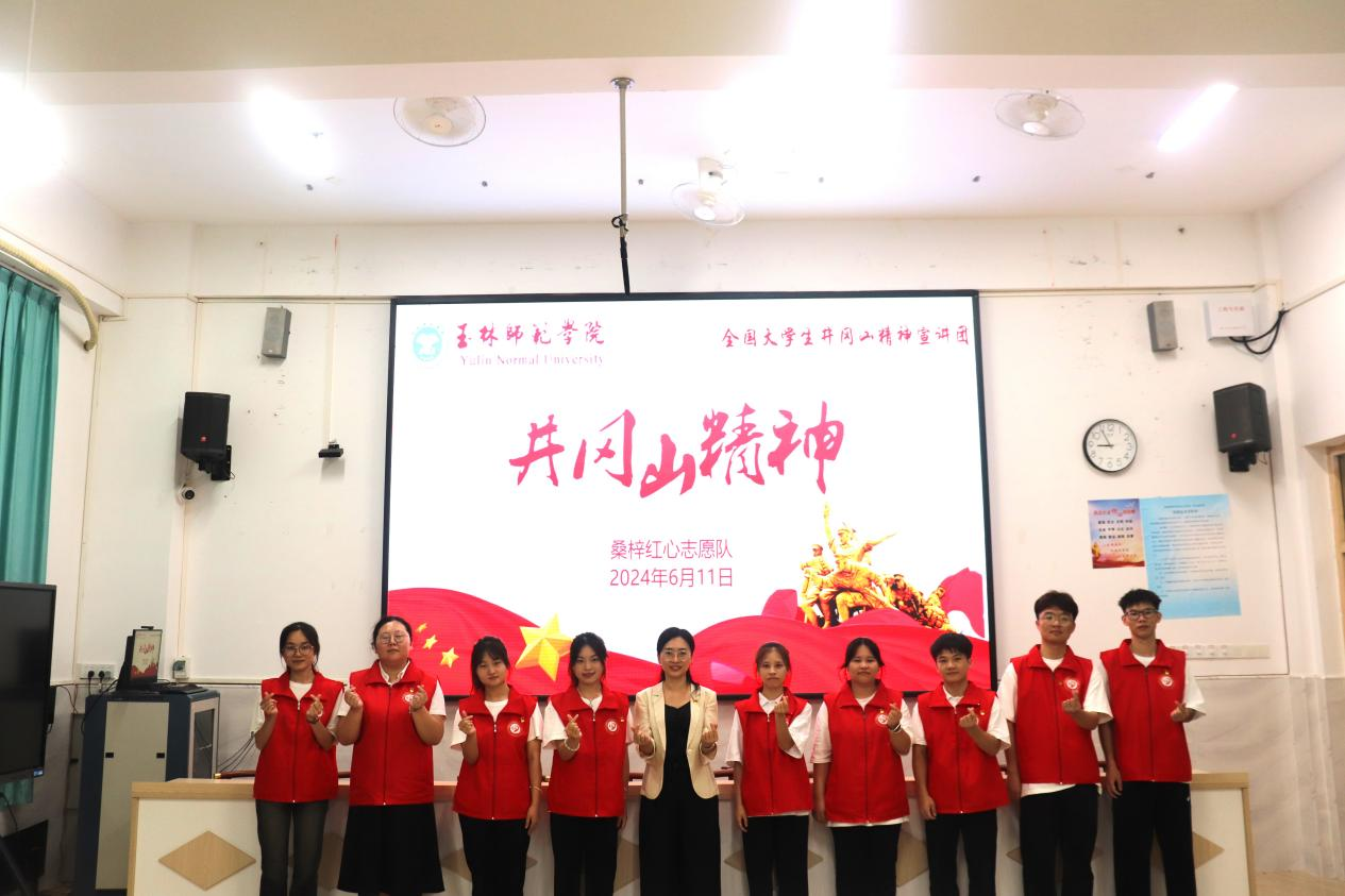 6月11日至6月20日,玉林师范学院商学院桑梓红心志愿队分别深入幼儿园、小学、中学以及大学等单位开展以“桑梓红心井冈情·薪火相传耀中华”为主题的宣讲会,共计10场,听众覆盖将近1000名。桑梓红心志愿队成员由该校商学院学生第三党支部的10名学生党员组成。在各场宣讲会中,该团队针对不同受众的年龄、学习等特点,通过设计“党史知识竞答”“讲好红军故事”“同唱一首红歌”“学折红色五角星”“观看井冈山革命历史视频”和“红色诗歌朗诵”等丰富多彩的活动,生动再现井冈山那段艰辛与辉煌的红色历史,进一步坚定学生的理想信念,增强学生的文化自信,厚植青少年的爱国情怀。(通讯员 李晓丽 梁欣欣)