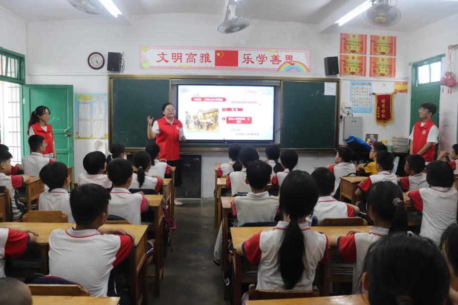 图为志愿者在小学宣讲井冈山小故事。潘佳意 供图